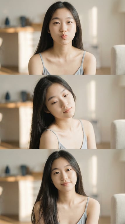The three images are arranged vertically, forming a continuous visual narrative, similar to a portrait photography seque...